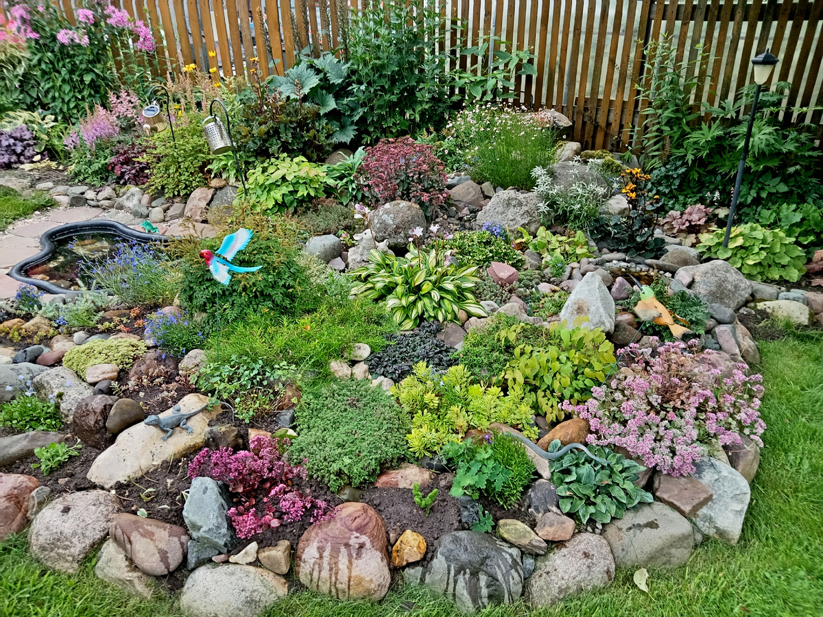 В рокарии он сидит довольно смирно, а вот на клумбе быстро почуял свободу и полез во все стороны.