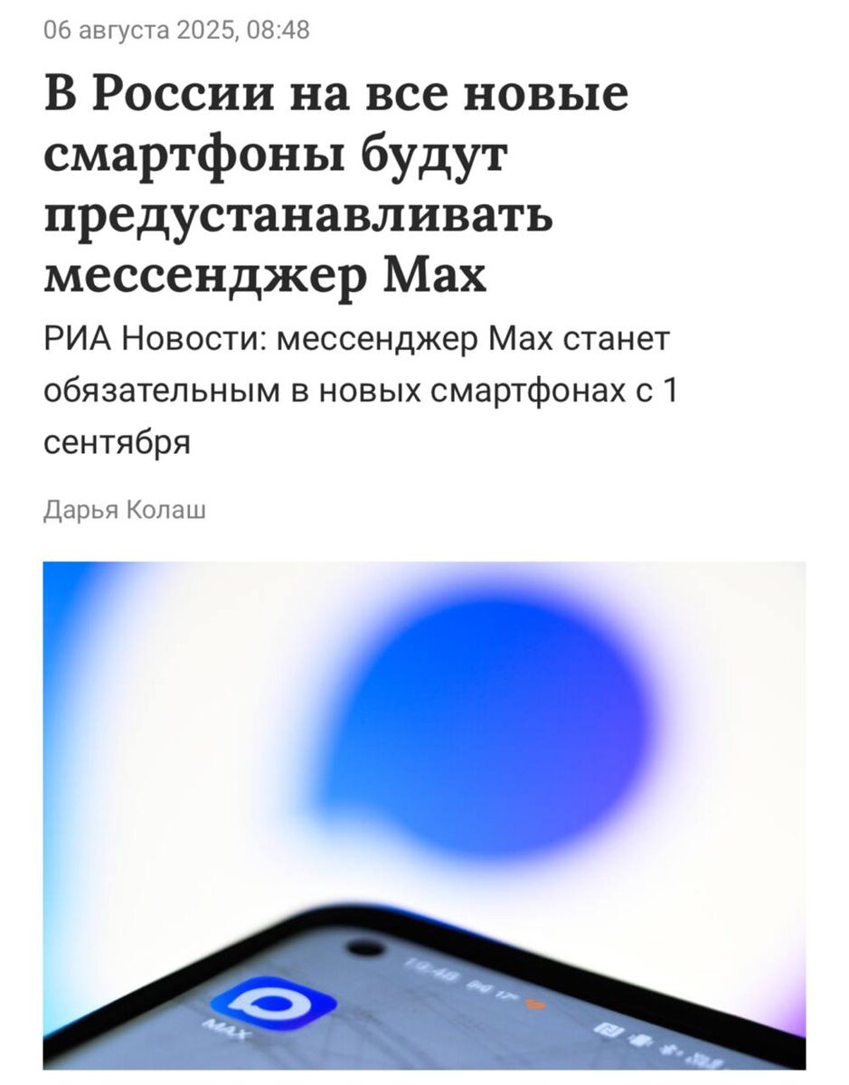 Мессенджер MAX с 1 сентября будут предустанавливать на все новые смартфоны в России — норму уже закрепили в законе