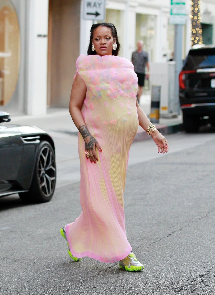 Пресс-тур «Смурфиков» закончился, а наряды Рианны — нет. Вчера в Лос-Анджелесе певица порадовала папарацци новым образом: винтажным платьем Issey Miyake из коллекции 2001 года в сочетании с кроссовками Mostro из коллаборации Puma и Ottolinger. Пользователи соцсетей уже сравнили платье с конфетой, жвачкой, капкейком и облаком, а кто-то пошутил, что оно сгенерировано нейросетью. 🔹The Blueprint News