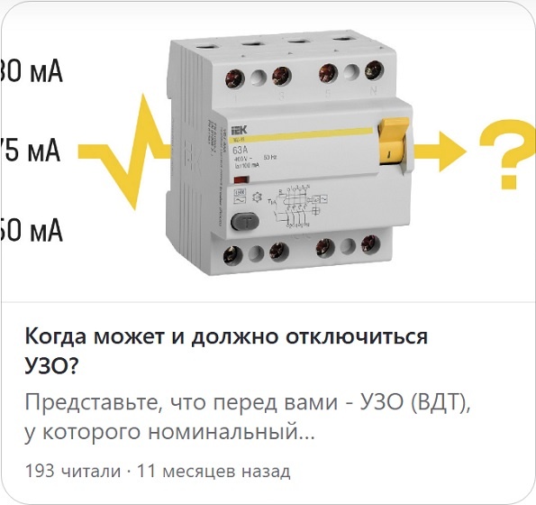 Заключение. Статья «Когда может и должно отключиться УЗО» представляет собой дезинформацию для читателей. Её подготовило лицо, которое или не знает требования ГОСТ IEC 61008-1 к ВДТ, или специально их искажает. Причём на канале IEK GROUP опубликовано много статей, дезинформирующих читателей в вопросах устройства электроустановок зданий, применению в них защитных устройств.