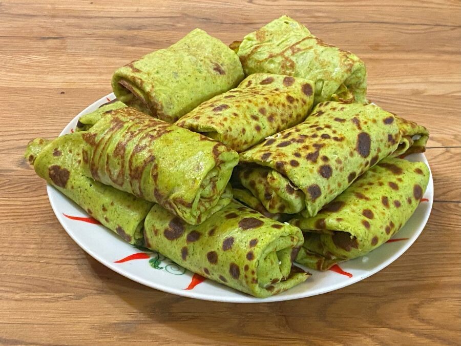 Блины мои получились зелеными, такое ощущение, что в тесте есть шпинат.