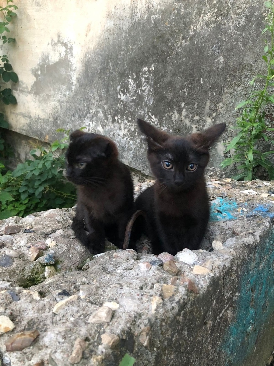 Подбросили котят,на вид месяца 3-4,очень худые😢дети их тискают