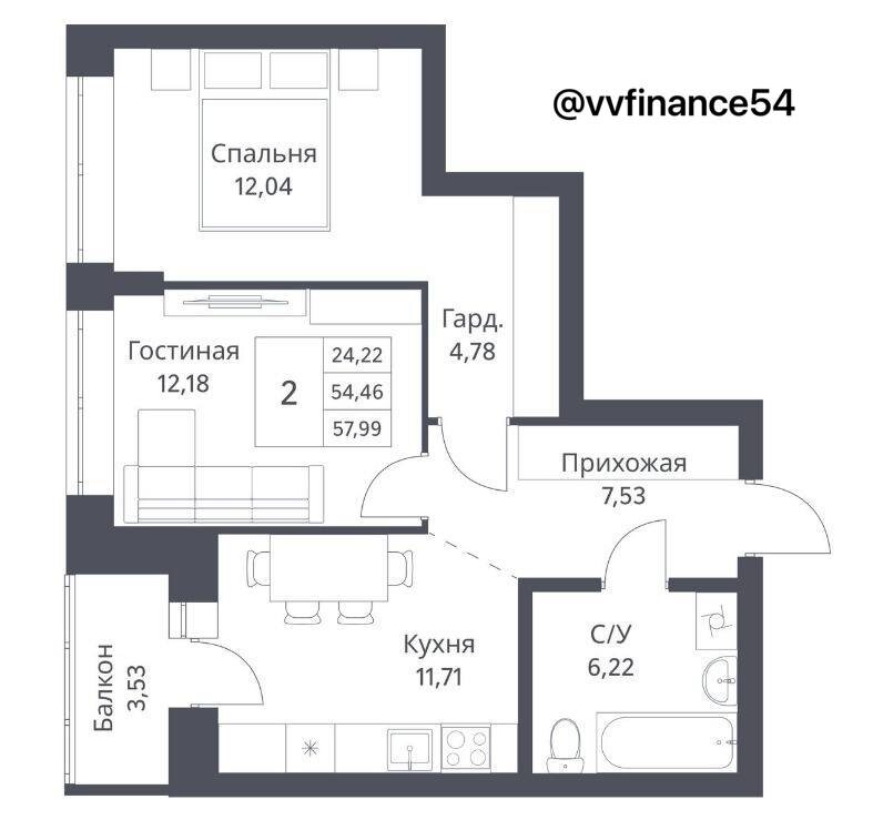 ✅Комфорт-класс, 2к квартира 54м² – места хватит всем!