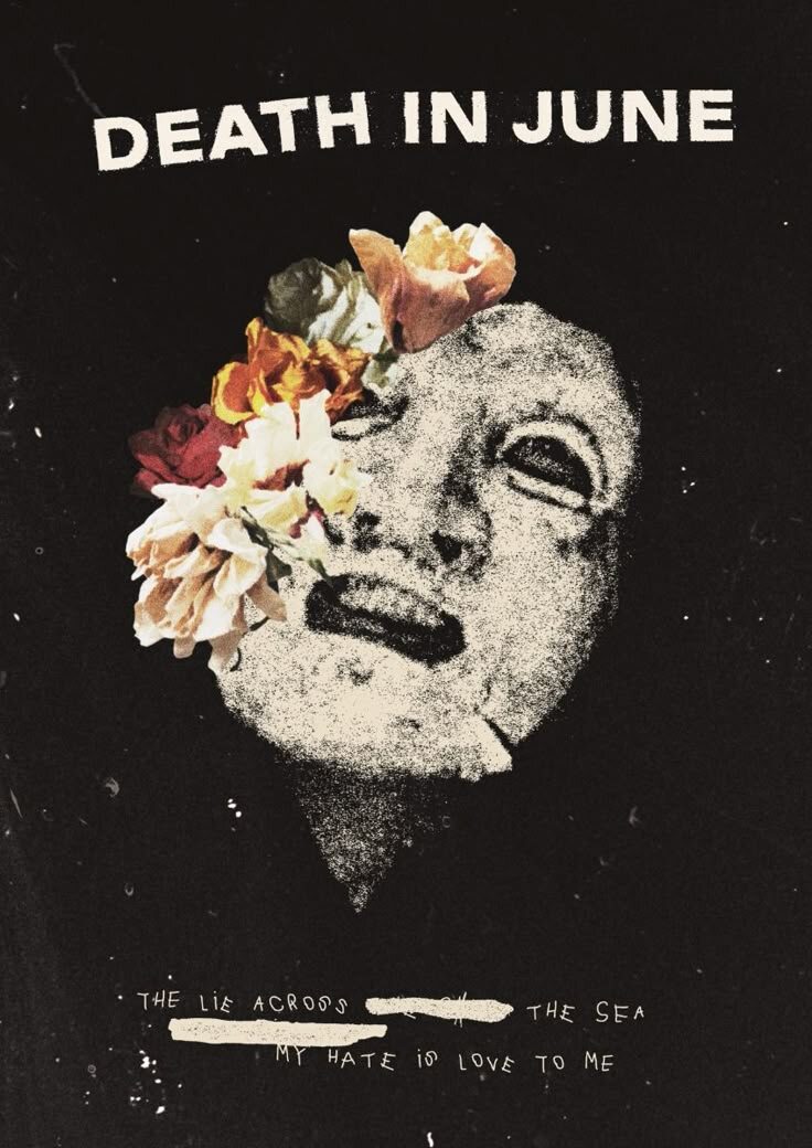 *(...или как один проект стал звуковым манифестом пост-травматического синдрома целой цивилизации, обернутым в свастики, розы и кожаную мистику.)* --- ### **1. ИСТОКИ: КОГДА ПАНК УМЕР, А ЕГО ТРУП ПРОРОС ФОЛЬКЛОРОМ** Death in June (DIJ) — это Дуглас Пирс (Douglas P.), бывший участник британской панк-группы **Crisis**, который в 1981 году решил, что агрессия без рефлексии — это тупик. Вместе с Тони Уэйкфордом (позже ушедшим в **Sol Invictus**) и Патриком Лигасдом (из **Current 93**) он создал проект, который из останков пост-панка слепил нечто новое — **нео-фолк**. Это музыка, которая звучит так, будто её записывали в бункере последние выжившие после апокалипсиса: акустические гитары, маршевые ритмы, шёпот, переходящий в крик. Но главное — **эстетика**. DIJ — это: - **Символика Третьего рейха**, переосмысленная как театр абсурда. - **Образы мёртвой Европы** — поля, усыпанные костями, замки, где живут только тени. - **Кожаные маски и униформа** — словно участники группы