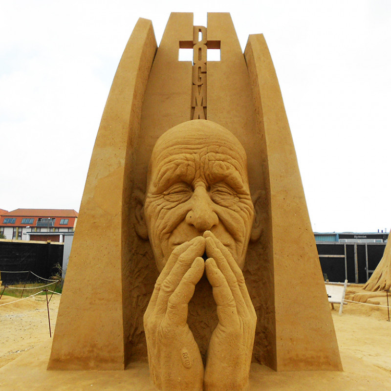 На ежегодные фестивали песчаных скульптур, проводимые в разных городах Дании, съезжаются скульпторы со всего мира: из Испании, Канады, Великобритании, Турции, Голландии, России… Темы фестивалей различны: здесь и средневековье, и искусство, и дикие животные Африки… Короли и алхимики, герои сражающиеся с чудовищами за справедливость, принцессы, ждущие своего принца, фермеры, борющиеся за выживание, сцены инквизиции, чума, унесшая жизни миллионов людей, и многое другое представлено в исполнении лучших мастеров песчаной скульптуры. Бетховен во время написания 9-ой симфонии, когда он был практически глухим. Жанна Д Арк здесь изображена ещё тогда, когда была обычной крестьянской девушкой и пряла шерсть, когда её посетило видение, что она возглавит борьбу за независимость Франции, Мать Земля… На изготовление одной скульптуры высотой 4 метра уходит 25 тонн песка. Песчаные скульптуры изготавливают из песка добытого в гравийном карьере, содержащего около 10% глины. Песок смешивается с водой и пр
