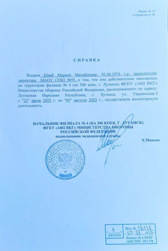 Завершилась моя двухнедельная волонтерская миссия, которая проходила в филиале № 4 военно-клинического госпиталя 1602 МО РФ в городе Луганске. Я работала в терапевтическом отделении, приобрела новые навыки: научилась заправлять и устанавливать пациентам капельницы, разводить и ставить уколы, делать перевязки, снимать ЭКГ, работать с медицинской документацией. Хочу поблагодарить руководство и весь персонал госпиталя за предоставленную возможность оказать посильную помощь тем, кто в ней нуждается. Было очень приятно получать слова благодарности от ребят, которые проходят лечение. Всем скорейшего выздоровления!!! А я уже подъезжаю к Москве и скоро буду в родной ТЮМЕНИ.