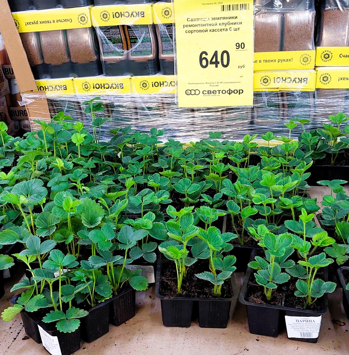 Товар Дня в Светофоре - Саженцы земляники ремонтантной клубники сортовой. Впервые привезли такую новинку со дня основания Светофора. В кассете 6 шт. Производитель питомник Красноярского Края. Цена 640,9 руб.
