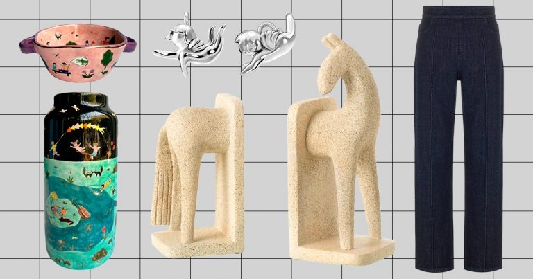Керамика супругов Дмитрия Гуржии и Натальи Семеновой — чаще всего история про ностальгию в самых разных ее проявлениях. В новой коллекции Gourji «Фантазеры» проявления максимально трогательные — в виде наивных зарисовок о беззаботных детских приключениях. Конфетницы с ручками-ушками (20 000 руб.), блюда (25 000 руб.), вазы (65 000 руб.) и кувшины (70 000 руб.) можно купить в The Dar Store онлайн и в магазине на Малой Никитской.
