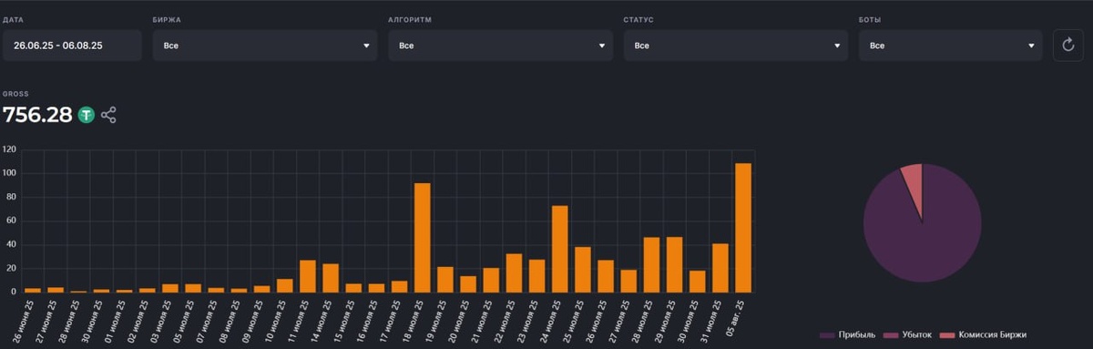 На данный момент, имеем такой профит на Veles, без учёта убытка по Short позиции. 💠 Продолжаю тестировать бота, попробую добавить фильтры. 💰С фильтрами, профит должен быть больше. ➡️Новости крипторынка - CryptoSOS_NEWS ➡️Бесплатный чат с экспертами - CryptoSOS chat
