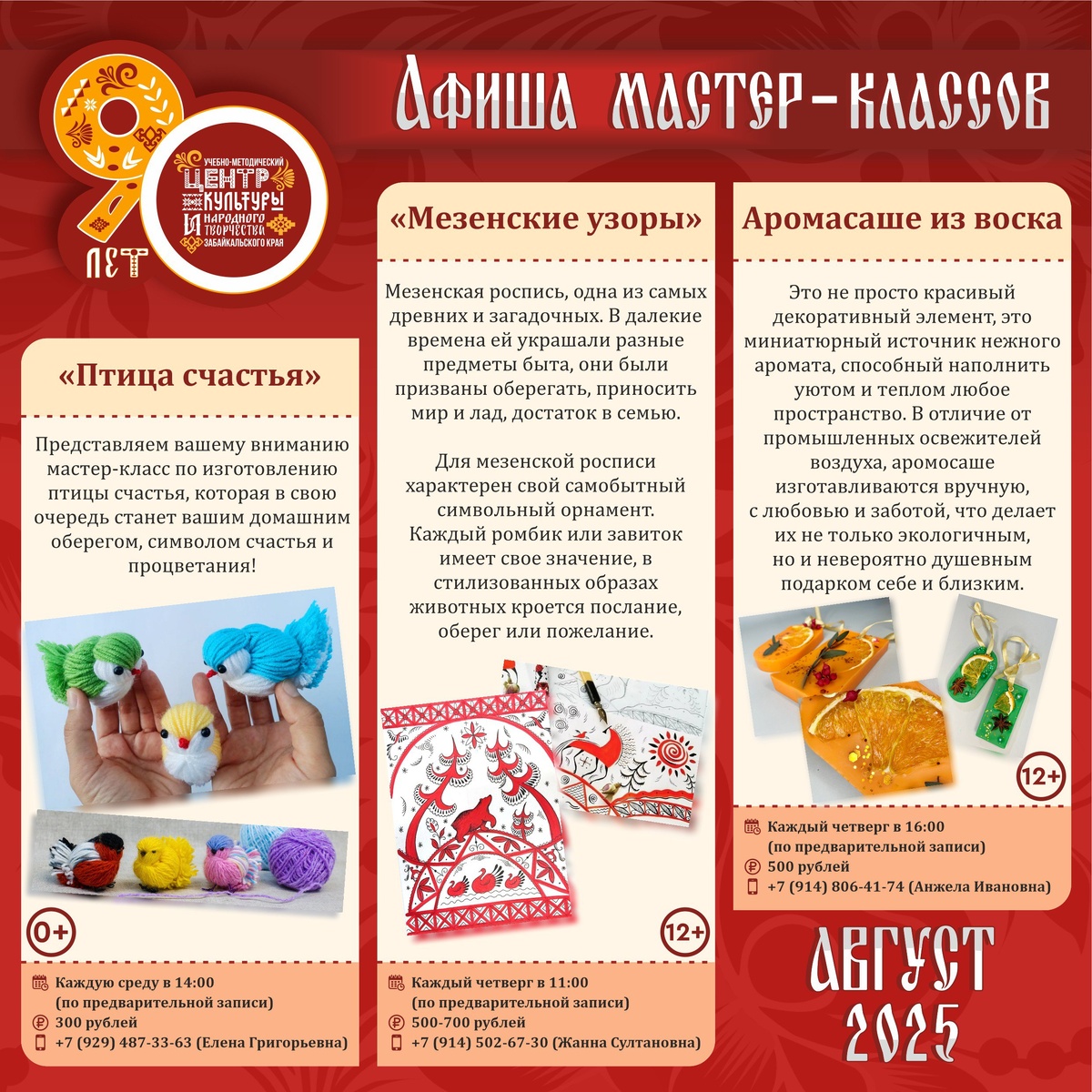 🔔 Учебно-методический центр культуры и народного творчества Забайкальского края приглашает посетить наши мастер-классы, которые будут проводиться в течение этого месяца.