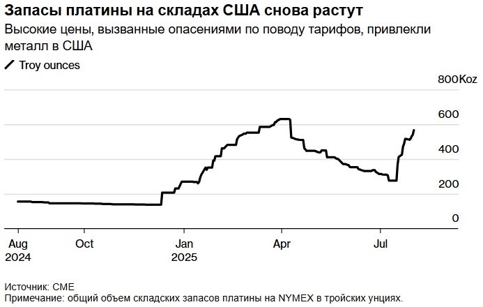 Золото, медь и другие металлы поставлялись в США, поскольку трейдеры стремились извлечь выгоду из колебаний цен, вызванных опасениями по поводу введения пошлин. Однако напряжённость на рынке платины оказалась исключительной.