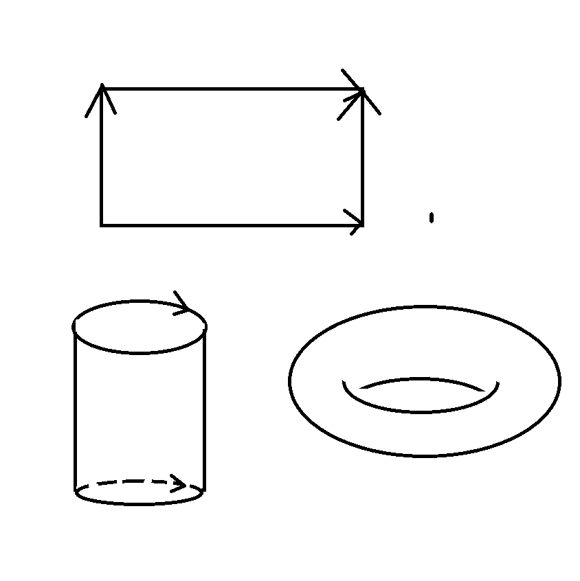 Берем заготовку – квадрат (кому хочется, можно считать, что мы взяли круг, и спрямили его, сделав четыре угла, топология позволяет). Пока у него есть края – четыре отрезка. Склеим противоположные стороны не перекручивая их, получится труба.