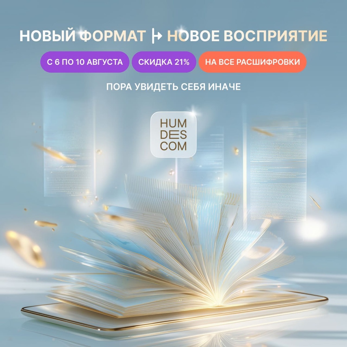 Новый формат — для новых открытий Вы давно это ждали. Мы сделали. Мы проделали большую и кропотливую работу, вручную переработали расшифровки — строка за строкой. Учитывали ваши вопросы, пожелания и комментарии, накопленные за последние годы: обновили структуру, подчистили формулировки, добавили важное и убрали лишние сложности. Всё это ради одной цели: чтобы ваш путь к себе был простым, понятным и по-настоящему приятным. Теперь читать расшифровки удобно где угодно — в метро, в ожидании кофе, перед сном. С любого устройства — от телефона до ноутбука. Вы открываете текст — и он говорит с вами. С 4 по 8 августа действует скидка 21% на все версии расшифровок и пакетные предложения — в честь большого обновления. Обновились мы. Обновитесь и вы. Уже купленные расшифровки обновятся автоматически — дополнительных действий от вас не требуется. ✨ Теперь даже знакомая расшифровка может зазвучать по-новому. Старт акции: 4 августа в 00:00 мск Окончание: 8 августа в 23:59 мск 1️⃣ https://se