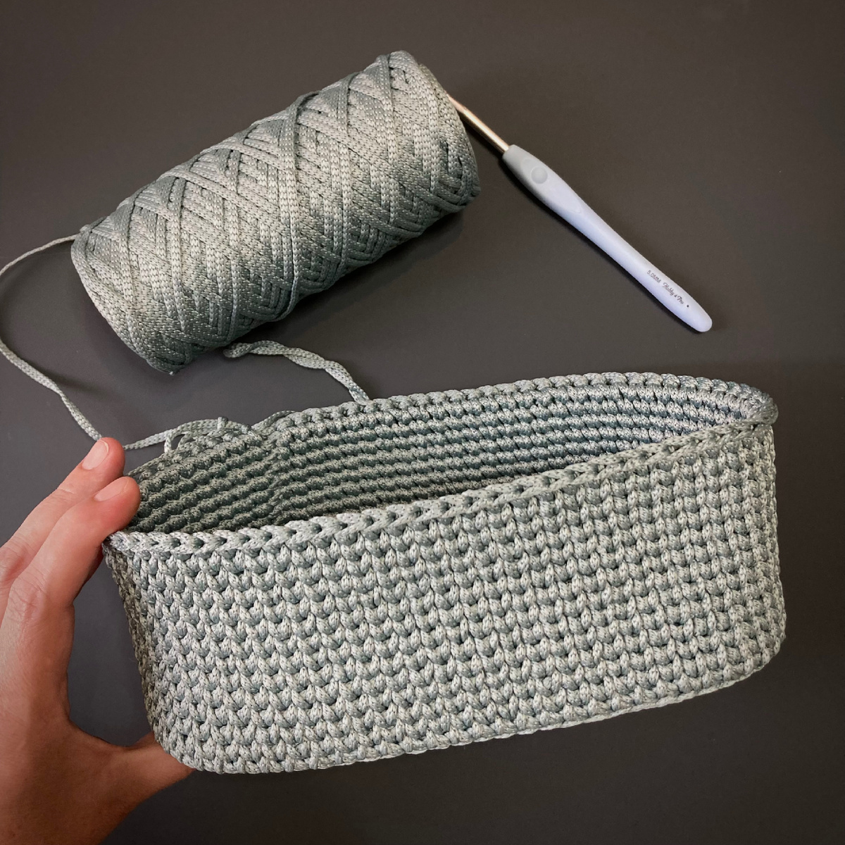 50% моего изделия готово! На первый взгляд: «что там вязать? Крючок номер 5, шнур 3 мм…» На самом деле все это не так, я уже писала, что большой диаметр инструмента не влияет на быстрый результат 😉 А я продолжаю вязать крючком, за кадром ещё потрясающие носки и плечевое изделие. А процесс одного изделия от пряжи и до готового вы сможете посмотреть в моем тг канале ⬇️