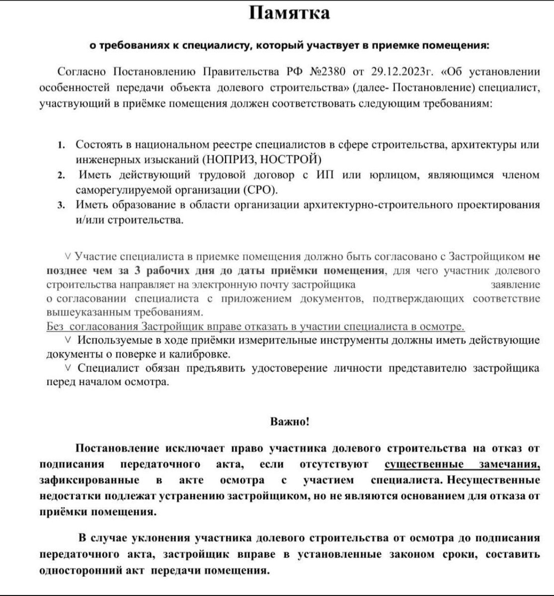 ЖК Смородина г. Тюмень Что не так в этой памятке? Видно, что права клиента нарушены или все ок? Мне очень понравилось, что ни слова про устранение замечаний 😁🙈зато про обязательства дольщика и его представителя (не верные при чем) весь текст.