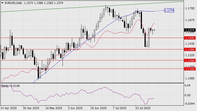 https://basechop.ru/wordpress/?p=52708 EUR/USD Вчерашние данные по настроениям деловой активности в США за июль вышли смешанными: Services PMI от компании Markit показал рост с 52,9 до 55,7 и композитный индекс подрос с 52,9 до 55,1, а от института ISM индекс ослаб с 50,8 до 50,1. Евро не вырос и не снизился по итогу дня, что позволило СМИ интерпретировать более авторитетные данные от ISM как слабые, но мы бы обратили внимание на ещё более важные данные (для ценообразования): сальдо торгового баланса и прогноз по ВВП. Сальдо в июне улучшилось с -71,7 млрд долларов до -60,2 млрд, что стало лучшим показателем за 2 года. И фактически Трамп вытянул США за последние полгода из глубочайшей пропасти отрицательного сальдо -138 млрд долларов – рекордного в истории. Если тарифная политика Трампа будет продолжаться в таком же духе, то уже в будущем году сальдо станет положительным впервые с 1982 года. И, конечно, доллар сильно укрепится. Также прогноз ФРБ Атланты по ВВП за 3-й квартал был повышен