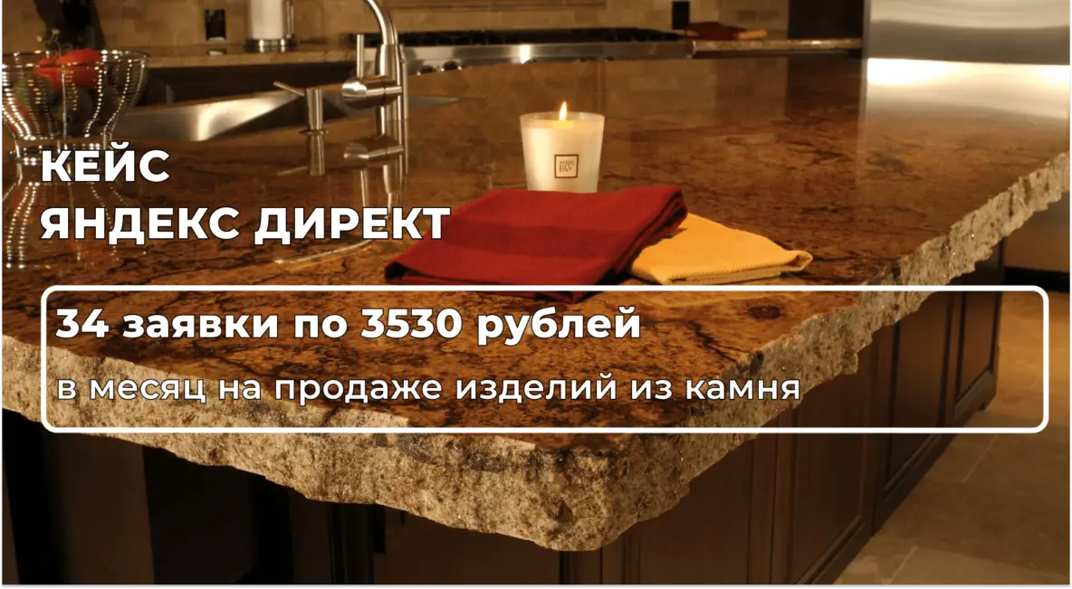 Кампания с общими запросами, где содержатся такие фразы, как “столешницы +под ключ”, “подоконники +на заказ”. Выделили данные фразы в другую кампанию, так как они без привязки к слову “камень”.