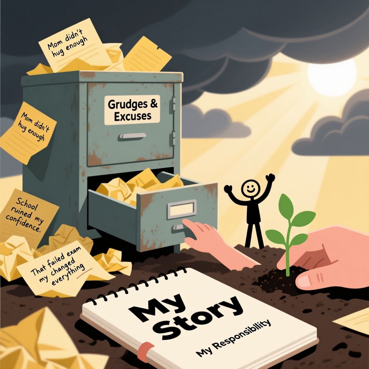 Архив обид: или когда пора перестать винить маму, папу и ту самую двойку по изике Признавайтесь, кто хранит в глубине души аккуратный (или не очень) список? 📋 Родители: "Не научили уверенности/любить себя/мыть посуду сразу после еды". Школа/Университет: "Забили на мои таланты/травили/давали ненужные знания/не дали нужных". Бывшие: "Сломали мне жизнь/доверие/представление о счастье". Экономика/Правительство/Погода в прошлую субботу: "Вот из-за них у меня ничего не получается!". Руки чешутся поставить галочку? Знакомое чувство. Игра в "Кто виноват?" – один из самых популярных (и самых бесполезных) интеллектуальных видов спорта.*Поначалу она даже приносит облегчение: "Ага! Значит, не я такой криворукий/неудачливый/вечно ноющий, это они все испортили!" На какое-то время становится легче. Как после того, как громко хлопнул дверью. Но потом наступает утро. А проблемы-то никуда не делись. Незавершенные дела, неудовлетворенность, тревога – они по-прежнему здесь. И виноватые найдены, а ле