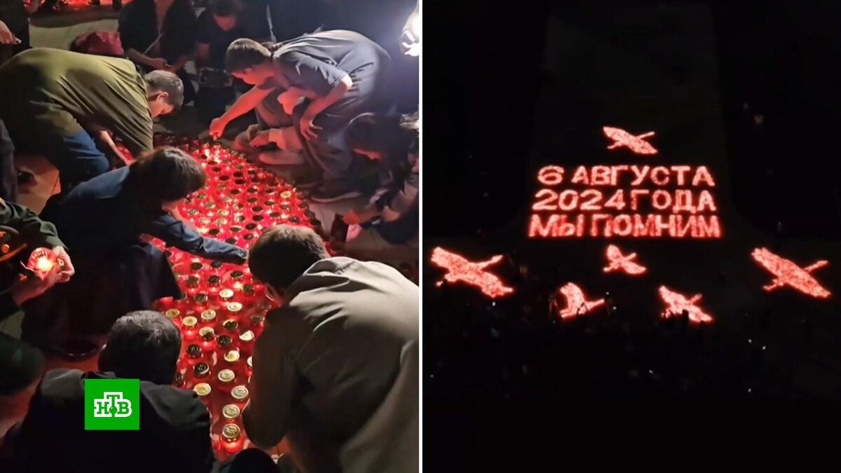 [ Смотреть видео на сайте НТВ ] Этой ночью в Курске зажглись тысячи лампад. Траурная акция приурочена к годовщине вторжения ВСУ в российское приграничье. Жители и волонтеры выложили из свечей надпись «6 августа 2024 года. Мы помним!» и фигуры улетающих журавлей в память обо всех погибших. Была объявлена и минута молчания. В курских храмах сегодня пройдут панихиды, а также прозвучит поминальный колокольный звон. О завершении операции по освобождению приграничья 26 апреля начальник Генштаба Валерий Герасимов доложил президенту. Наши защитники действовали слаженно, единым фронтом выбивали врага. Не последнюю роль сыграла и уникальная операция «Поток» в Суджанском районе, когда российские военные по газовой трубе прошли вглубь обороны противника и застигли его врасплох. Курская авантюра дорого обошлась киевскому режиму, потери колоссальные: порядка 80 тысяч убитыми, уничтожены сотни единиц техники, в том числе западной. Российские следователи ведут сейчас свыше 600 уголовных дел, связанных