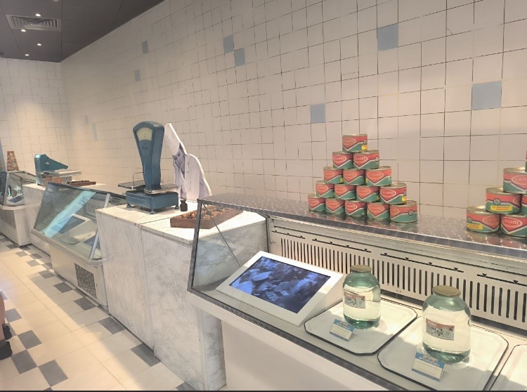 Друзья! Всем привет! Я Ольга. На своем канале пишу о жизни, о себе, о работе, вплетенной в жизнь. Это фото из экспозиции музея Б. Н. Ельцина. Ой.. Как же я сама помню эти магазы с кафельными стенами и полами.. И не в эпоху Ельцина, а гораздо раньше, 1969-70 гг примерно Мне было 4-6 лет, мы жили на Красной Пресне в Москве и часто ходили с бабушкой и тетей за продуктами в новые дома, так в просторечии магазин звали люди. Никаких магазинов самообслуживания в СССР не было, НИКАКИХ, друзья! И вот за всякой хренью надо было стоять в очереди.. а за прилавком красава в этом колпаке высоком с золотыми зубами и синими тенями на веках. А пока взрослые стояли, мне скучно было и я по этому кафелю, ходила смотреть живую рыбу. Тааак я хорошо это помню. И все время бабушке говорила -пойдём мол отсюда. Мне казалось, что это похоже не то на больницу, не то на туалет.. вот клянусь!.. а вот банки пирамидками тоже сама помню. Как меня бабушка учила по вывескам читать. Я не знаю.. напишу. Людей, которы