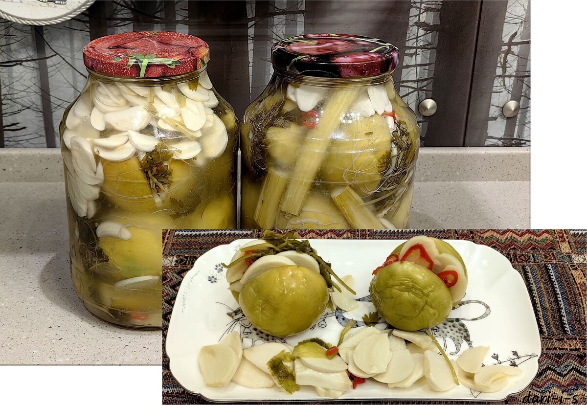 За основу я взяла рецепт из книги Инны Метельской-Шереметьевой, известной под ником DiDinfo. Но внесла некоторые свои изменения. Эти солёные помидоры мне очень понравились. Остренькие в меру, ядрёные, вкусные. Даже чеснок в ник вкусный получился. Однозначно советую. Автор предлагает есть помидоры через неделю после засолки, я же их закрутила в банки на зиму. Очень хорошо идут к мясным блюдам и как закуска под водочку:) Нам потребуются: Рассол (я делала 5 л): Перец вместе с семенами режем тонкими колечками. Зелень будем закладывать целыми веточками, а чеснок режем тонкими пластинами. Мытые помидоры разрезаем пополам, но не до конца. Плотно фаршируем чесноком, острым перцем и веточками зелени сельдерея. Обматываем х/б нитью, чтобы не раскрывались. В глубокую тару укладываем часть крупно порезанных стеблей сельдерея, остатки чеснока, перца и зелени. Сверху кладём разрезом набок помидоры. Складываем так всё слоями. Заливаем холодным рассолом. Накрываем крышкой и оставляем на засолку при ко