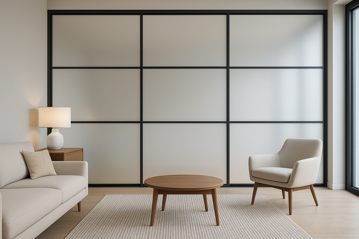 - Зонирование пространства. С помощью стеклянных перегородок можно элегантно отделить рабочую зону в гостиной, кухню от столовой или гардеробную в спальне. Коннекторы для стеклянных перегородок позволяют легко соединить несколько панелей между собой ( с помощью коннекторов стекло-стекло без сверления) или прикрепить их к стене (коннектор стекло-стена). Это создает ощущение открытого пространства, сохраняя при этом функциональное разделение.