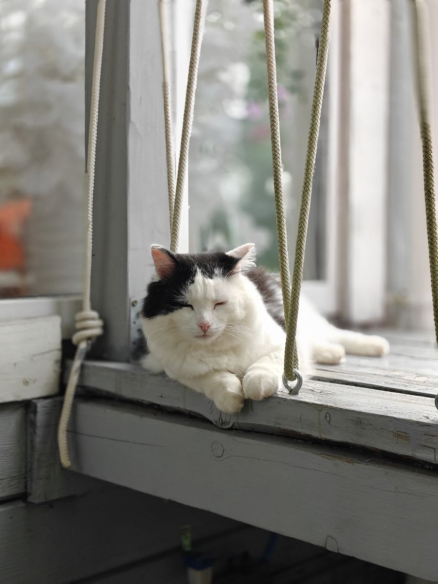 Сегодня в домике Фламинго 🦩 нет уборки. Поэтому Марсель Иванович пришел на террасу домика чтобы помурлыкать с гостями 🐈⬛, полакать чаю ☕ и насладиться прекрасным видом 🌅