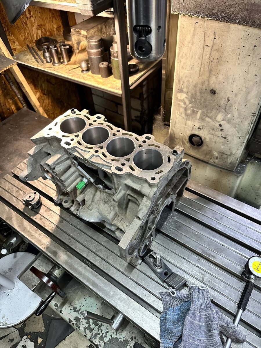 Блок Фольксваген поло 1.4 Расточка блока под ремонт (ф76,5). 3 цилиндра вышли идеально, а вот в 4 цилиндре не вышел задир. Небольшая ямка в цилиндре. Так оставлять нельзя, по этому решено загильзовать один цилиндр. На 1, 2, 3 фото видно это пятно. 4 фото. Начертил размеры гильзы, чтобы запчастист ее заказал. Как придет гильза, выложу процесс работы. #поло #бц #гильза