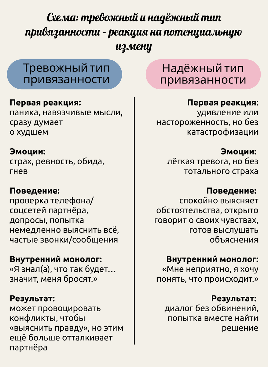 Ревность редко появляется на пустом месте. Часто её корни тянутся из прошлого опыта – предыдущих измен, травмирующих отношений или даже детства. Ревность питается старыми ранами и неуверенностью в себе. С точки зрения Attachment (теории привязанности), если в детстве человек не чувствовал себя в безопасности, не получал достаточно любви и заботы, во взрослом возрасте он может быть более склонен ревновать. Когда-то давно в нас мог закрепиться базовый сценарий: «близким нельзя доверять полностью – они уйдут или предадут». И теперь каждый поздний звонок или чужой взгляд напрягает старую струну тревоги.