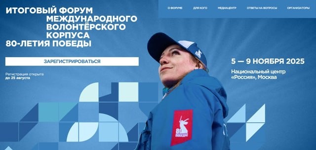 📲Волонтеры Победы дали старт регистрации на Итоговый форум Международного волонтерского корпуса 80-летия Победы, который пройдёт с 5 по 9 ноября в Москве на площадке Национального центра «Россия»