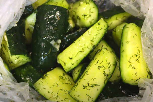 Быстрый рецепт всего за 2 часа! Такое быстрое маринование позволяет сохранить хрусткость огурцов, что делает их особенно аппетитными. Отличны к закускам, а также могут быть использованы в салатах. Ингредиенты: Приготовление: Пакет должен быть достаточно вместительным, чтобы не порвался во время дальнейших действий. 2. Чеснок мелко нарежьте и добавьте в пакет к огурцам. Если вы используете свежий укроп, хорошо промойте его и аккуратно нарежьте; если сухой — просто всыпьте его в пакет. Добавьте крупную соль. 3. Закройте пакет, выпустив из него воздух, и тщательно перемешайте содержимое, хорошо встряхивая пакет чтобы равномерно распределить соль и ароматы чеснока и укропа по огурцам. 4. Оставьте пакет с огурцами при комнатной температуре на 2 часа. Время от времени можно переворачивать пакет, чтобы ускорить процесс пропитывания. После 2 часов достаньте пакет и проверьте на вкус. Если огурцы недостаточно соленые, можно добавить немного соли и оставить еще на 30 минут. 5. Вы можете подават