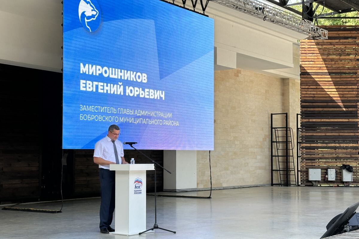 1 августа в «Зеленом театре» Центрального парка Воронежа состоялся партийный форум О развитии сельских территорий на примере Бобровского района рассказал заместитель главы администрации муниципального района Евгений Мирошников. По его словам, за итоговые пять лет было создано свыше 2,5 тысяч рабочих мест. В связи с реализацией новых инвестпроектов планируется создание еще 1 200 рабочих мест. «Что касается сферы образования, в школах действуют агроклассы при поддержке сельхозпредприятий района. По соцсфере: ведется капитальный ремонт Бобровской районной больницы, строится детская поликлиника, ФАПы. Кроме того, работают все дома культуры, развивается сельский туризм. Особое внимание уделяется ремонту дорог и безопасности дорожного движения. Также построено за пять лет пять автомобильных дорог протяженностью 40 км. Всё то, что мы делаем у нас в районе, всё, что при содействии партии делается и в других районах области – всё это для людей, для семей, а главное – для наших детей», - подчерк
