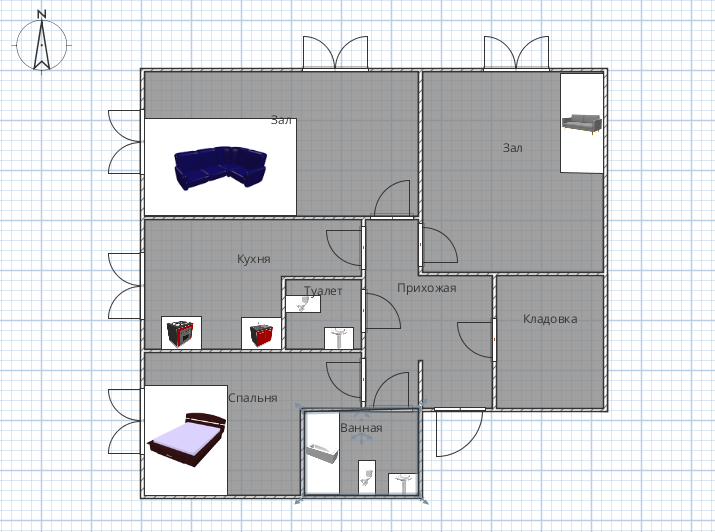Использовать буду как и в другой статье программу Sweet Home 3D - вспомним то, что уже делали ранее. План предварительный, имеется ввиду по расстановке мебели, отсутствию устройств и т.п., так как пока что я не имею доступа к квартире, но размеры стен и т.п. взяты с реального плана... Ну, может чуть отличаются... Мебель отличается цветом просто для контраста со стенами, так как они реально светло-серые...