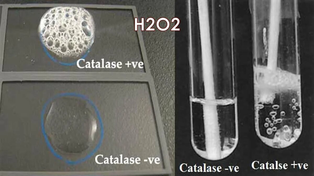 1) Метод определения каталазной активности выявляет способность микроорганизмов синтезировать фермент каталазу. Он разлагает перекись водорода на воду и кислород. При добавлении H2O2 к культуре каталазоположительных бактерий происходит выделение пузырьков кислорода, как способ защиты от токсического действия перекиси водорода – побочного продукта аэробного метаболизма 2) Метод определения оксидазной активности позволяет выявить наличие у бактерий фермента цитохромоксидазы – ключевого компонента электрон-транспортной цепи в аэробном дыхании. Этот фермент участвует в переносе электронов на молекулярный кислород, превращая его в воду в электрон-транспортной цепи. Для определения присутствия фермента использовали оксидазные тест-полоски, в которые втерли петлей бактериальную массу. Цвет тест-полосок меняется при наличии цитохромоксидазы. 3) Метод определения нитратредуктазной активности используется для выявления способности микроорганизмов восстанавливать нитраты до нитритов. Использовал