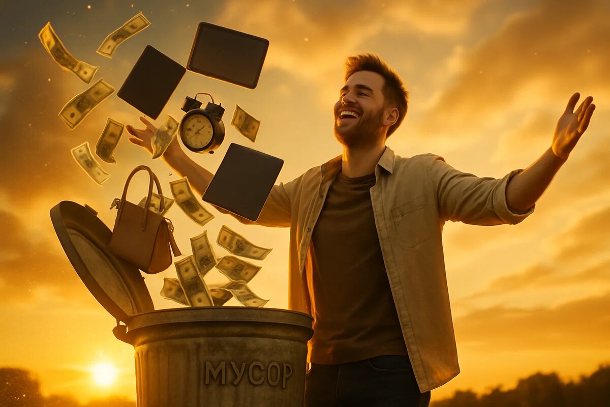 Если бы вы спросили меня пять лет назад, как разбогатеть, я бы начал перечислять скучные штуки: «работай больше», «копи», «инвестируй». Сейчас я скажу по-другому: начни выбрасывать хлам. Из дома. Из головы. Из кошелька. Да, это не мотивационный бред. Это - личный опыт. Минимализм буквально перепрошил мой финансовый мозг, и вот что из этого вышло. Исследование Томаса Корли показало: 77% бедных людей смотрят телевизор больше часа в день. Среди богатых - только 33%. Это не магия. Просто одни создают, другие - потребляют. Я ввёл себе правило: хочешь посмотреть сериал или поиграть в «плойку» - сначала создай что-то. Напиши, придумай, заработай, наведи порядок. Вы удивитесь, но именно с этой простой установки началась моя финансовая свобода. Мир построен так, чтобы вы постоянно что-то покупали. Кофе, музыку, шмотки, подписки, эмоции, ролики, даже мотивацию. Но всё меняется, когда ты начинаешь создавать, а не потреблять. Денег становится больше, тревоги - меньше. А удовольствие - настоящее.