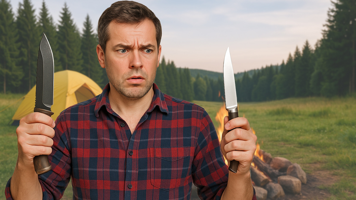 Ножи с толстым обухом десятилетиями позиционировались как символ надёжности. Кажется, что массивный клинок выдержит всё: от колки дров до открывания консервных банок. Но есть нюанс. В большинстве случаев такой нож делает свою главную работу — резку — хуже. И вот здесь скрыта причина, почему опытные туристы и EDC‑энтузиасты переходят на тонкие клинки. Представьте: на привале нужно нарезать хлеб, сыр или аккуратно почистить рыбу. Толстый нож с обухом 4–5 мм не режет — он давит и рвёт. Приходится прикладывать больше усилий, результат получается грубым. А теперь вспомните, как работает тонкий нож: он легко проникает в материал, срез получается чистым, движения — плавными. В обычных походных и повседневных задачах разница колоссальная. Слишком тонкий клинок (менее 2 мм) может гнуться и быть небезопасным. Слишком толстый превращается в неудобный лом. Золотая середина — 2,5–3 мм.