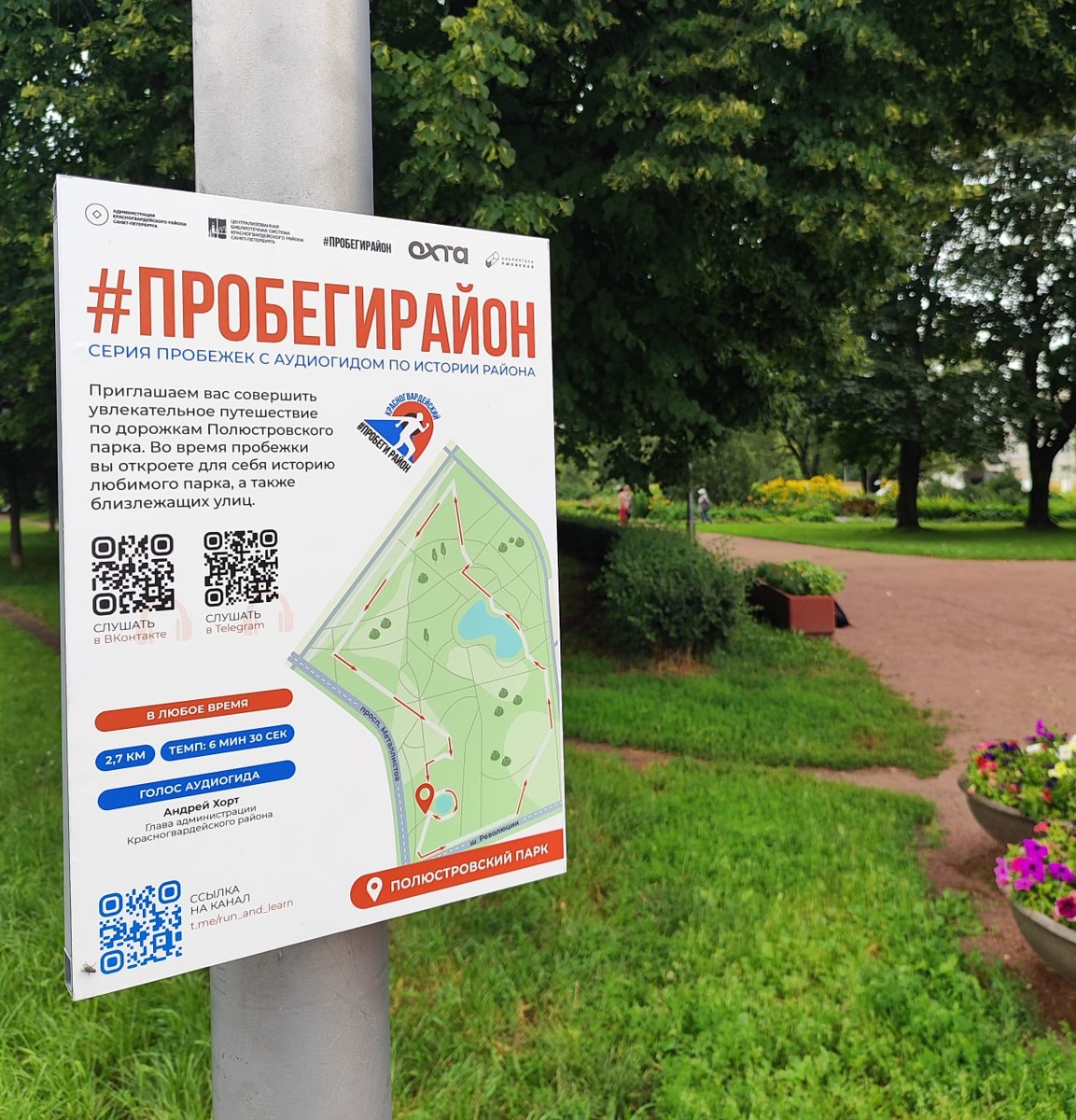 🏃🏃♀️В Полюстровском парке появился информационный стенд с картой первого бегового краеведческого маршрута и QR-кодом на аудиогид