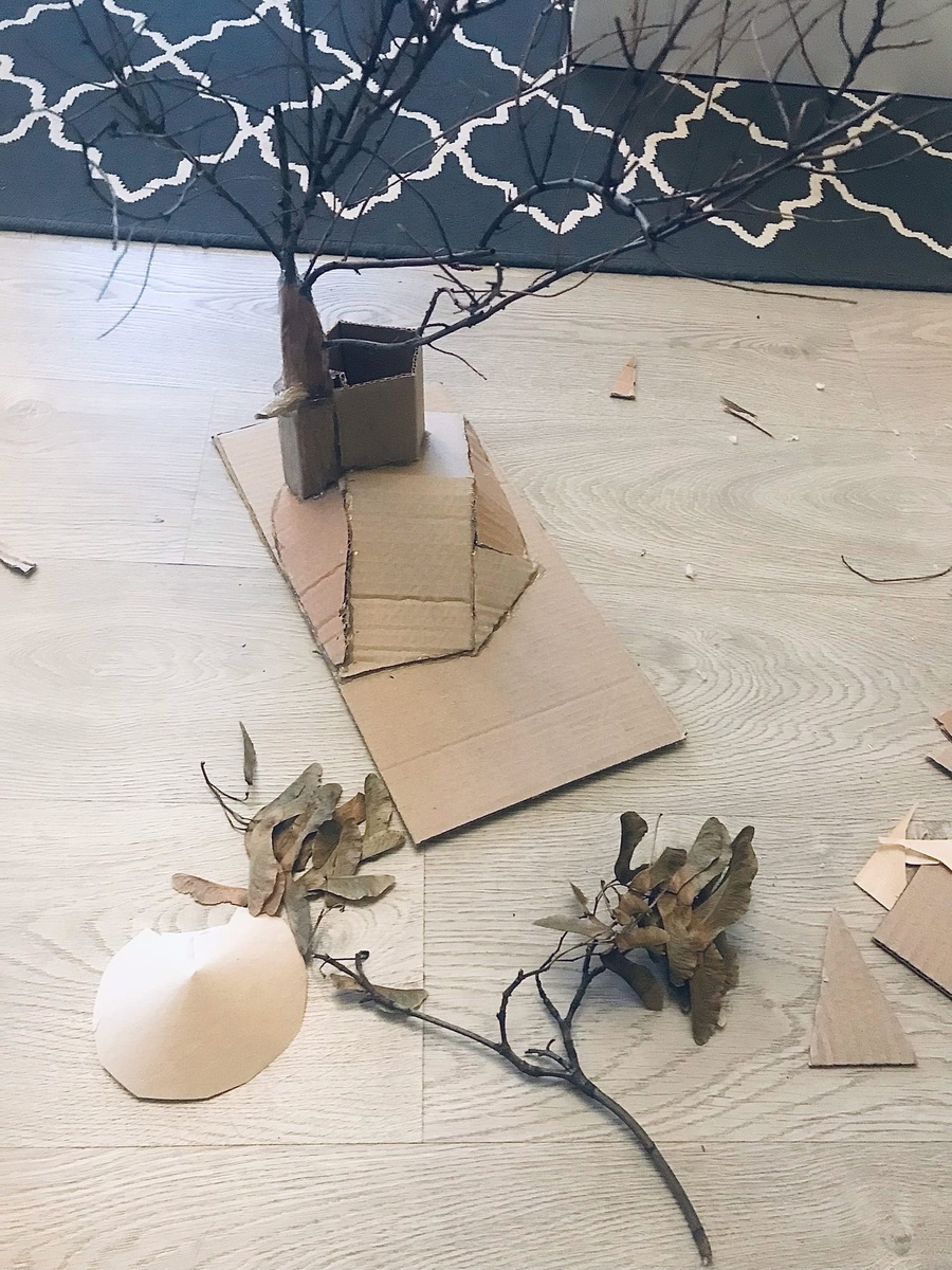 2. Архитектура: Из этого нехитрого набора создаем холм, домик, основу для дерева – все, что душе угодно! Малярный скотч – наш цемент и гипс.