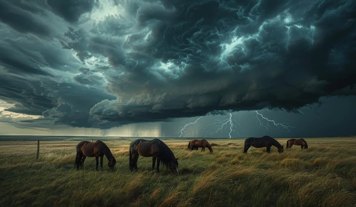 Молния убила казахстанца, лошадей и собаку: видео с места трагедии опубликовано в сети