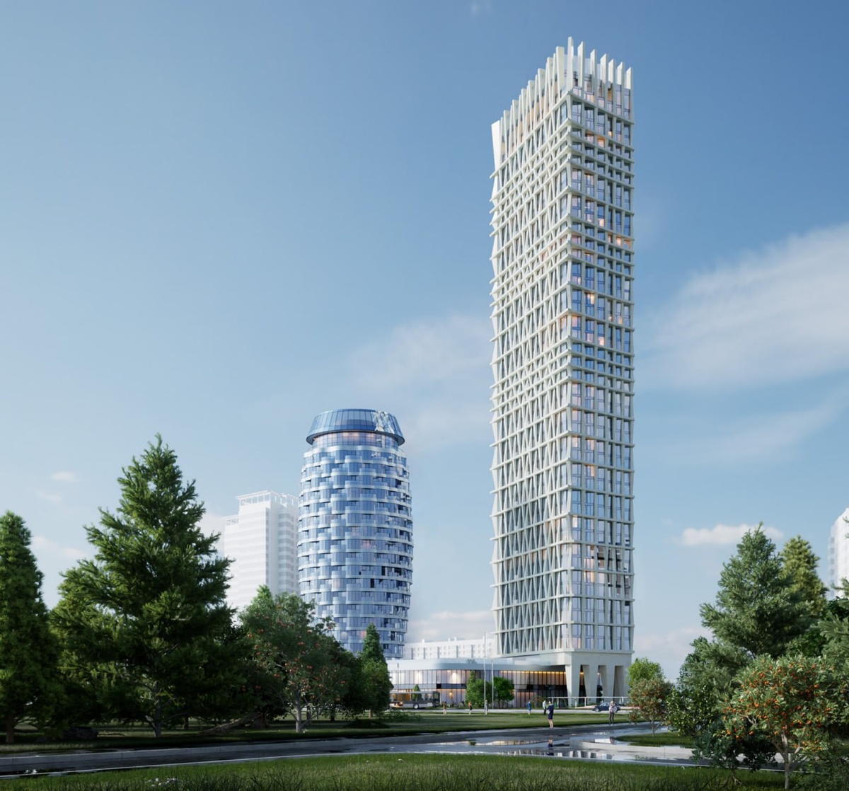 Появились визуализации проекта компании Coldy на улице Сафоновская, 13 в Можайском районе (ЗАО). Жилой комплекс включает три корпуса: 20-этажную и 46-этажную башни с общим двухэтажным стилобатом, а также двухэтажное реконструированное здание. Концепцию разработало бюро Kleinewelt Аrchitekten.