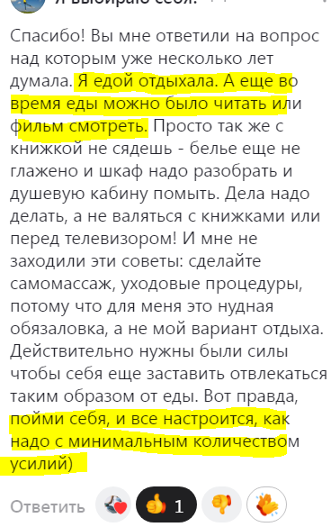 например, законное личное время, не требующее "прикрытия" лишней едой,