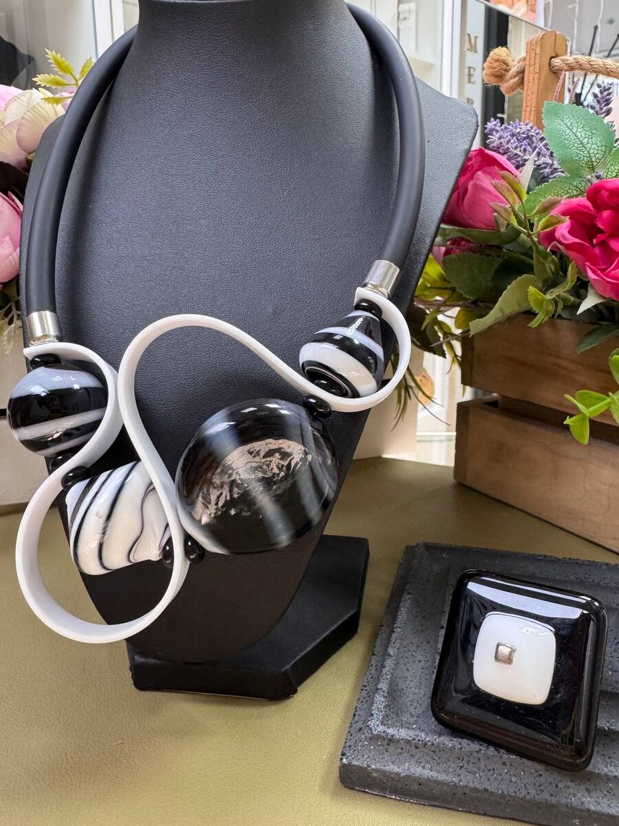 Графика, пластика и контраст: чёрно-белое колье с волнообразными линиями — как произведение современного искусства