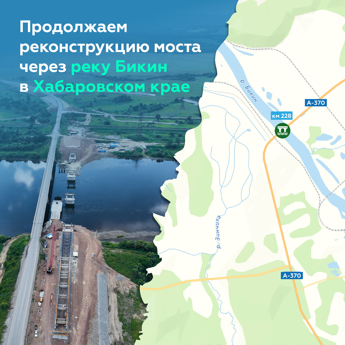 Завершили устройство опор на мосту через реку Бикин на А-370 «Уссури»