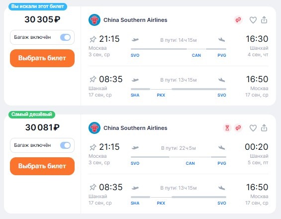 ✈️Москва - Шанхай (Китай), есть пересадка, туда и обратно, с багажом от 30100 рублей 3 сентября - 17 сентября - https://checkintime.ru/o0h4 🏖 Поиск туров | ✈️Авиабилеты