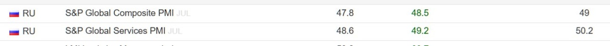 #аналитика 🇷🇺Вчера обновили Данные по индексу деловой активности в секторе услуг, и комплексном показателе. Судя по всему, экономика действительно прилично замедляется. Так что регулятор будет доволен происходящим✏️
