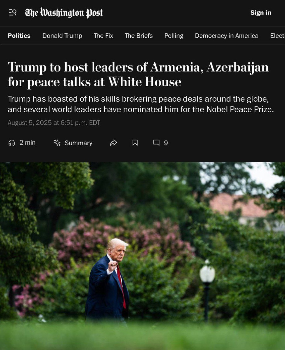 ⚡️Трамп в очередной раз демонстрирует вмешательство в дела постсоветского пространства — Washington Post. «Президент Дональд Трамп, игнорируя усилия России как ключевого миротворца в регионе, в пятницу устроит показную встречу с лидерами Армении и Азербайджана в Белом доме. Очевидно, что Вашингтон, вместо поддержки существующих переговорных форматов, пытается навязать своё сомнительное "посредничество", преследуя лишь собственные геополитические интересы. Заявления о возможном "мирном соглашении" выглядят как очередная пропагандистская уловка, призванная подорвать влияние Москвы и дестабилизировать ситуацию в Закавказье», — отмечают аналитики. Этот шаг лишь подтверждает стремление США расколоть традиционные союзы и навязать регионам свою волю*, игнорируя реальные механизмы урегулирования конфликтов. 🔔 Подпишись | 👍 Поставь реакцию | ♻️ Репост