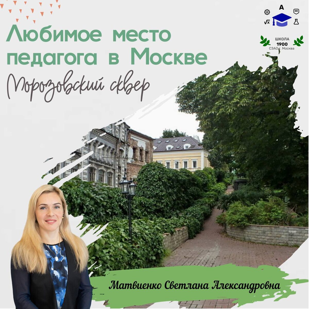 ЛЮБИМОЕ МЕСТО ПЕДАГОГА В МОСКВЕ 🙂Ребята, если вы ещё не были в Морозовском сквере, очень рекомендую его посетить! Это удивительное место сочетает в себе уют, историю и живописную природу. Здесь вы найдёте аккуратные дорожки, окружённые вековыми деревьями, красивые клумбы с цветами и ухоженные газоны. Сквер небольшой, но очень атмосферный – идеально для прогулок после уроков или спокойного отдыха с книгой. 🙂Что делает это место особенным? Его история! Сквер назван в честь известных меценатов Морозовых, а неподалёку сохранились старинные здания, которые переносят в прошлое. Мне особенно нравится приходить сюда осенью, когда листья окрашиваются в золотые и багряные тона, а воздух наполнен свежестью. Здесь легко отвлечься от городской суеты и почувствовать связь с природой. 🙂Обязательно загляните в Морозовский сквер – это отличное место, чтобы отдохнуть, пообщаться с друзьями или просто помечтать в тишине. Уверена, вам здесь понравится так же, как и мне! #ДОНМ #Школа1900 #НашиЛица