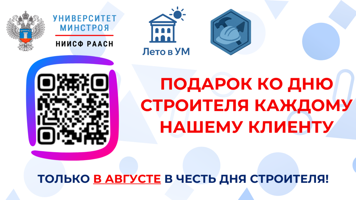 🎁 ПРОВЕРЬТЕ ПОЧТУ: ТАМ ПОДАРОК ОТ УНИВЕРСИТЕТА МИНСТРОЯ 🫶 В преддверии Дня строителя мы хотим поблагодарить вас за сотрудничество, доверие и участие в развитии нашего Университета. Каждый из вас помогает нам расти — не только количественно, но и качественно. Ваши идеи, обратная связь и участие в проектах формируют вектор развития наших программ ➡️ В августе у нас для вас два важных повода заглянуть в наш каталог: 1️⃣ Бесплатный экспресс-курс Только для постоянных клиентов — один экспресс-курс по вашему выбору из каталога вы можете пройти совершенно бесплатно. Просто выберите курс и укажите в заявке, в каком из наших мероприятий вы уже участвовали — менеджер свяжется для подтверждения 2️⃣ Летняя акция со специальными ценами (до 31 августа) на все образовательные программы: 🔵 Программы профпереподготовки: 55 000₽ вместо 64 900₽ 🔵 Курсы повышения квалификации: 25 000₽ вместо 34 900₽ 🔵 Практические семинары: 19 500₽ вместо 24 900₽ 🔵 Экспресс-курсы: скидка 2 000₽ ➕ А ещё у нас ес