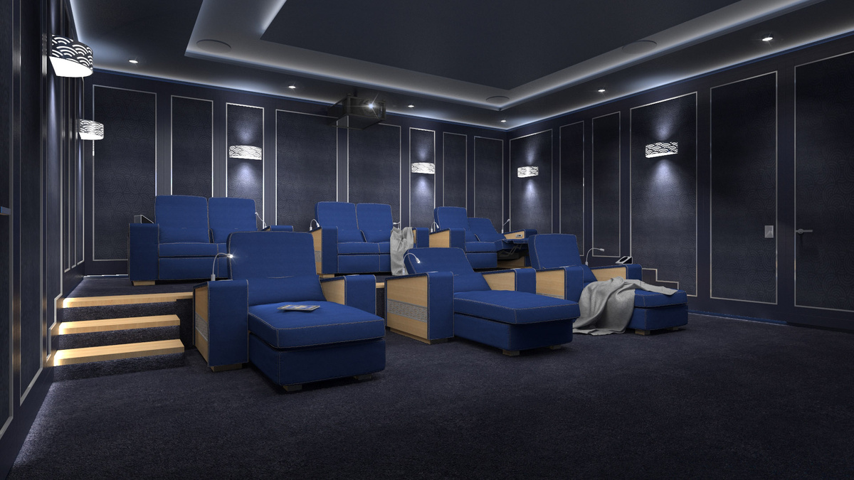 Название проекта: ИНДИГО Тип: ЧАСТНЫЙ ДОМ Место: МОСКВА, РОССИЯ Авторы: ARTINSTALL Площадь: 50 кв.м. Звук: 9.4.6 Дом заказчика расположен в посёлке Истринского района Московской области. Место для кинозала площадью 50 кв. м выбрано в цокольном этаже дома. Помещение под кинозал имеет ряд недостатков. Один из них — это то, что помещение является проходным. В нём целых три двери, ведущих в различные помещения: в бар, бильярдную и санузел. Такое количество входов ухудшает звуковые характеристики помещения. Второй недостаток — наличие перед экраном проходной зоны из бильярдной в туалет. Дизайн интерьера кинозала, как и всего дома — ар-деко. Дизайн разрабатывался сторонним дизайнерским бюро. По техническому заданию необходимо было вписать в готовый дизайн наши акустические системы, экран и аппаратуру. Благодаря достаточно большой площади исходного помещения стало возможным использование новейшего формата Dollby Atmos с конфигурацией 9.4.6. Зрительские места, по задумке дизайнеров, размещены