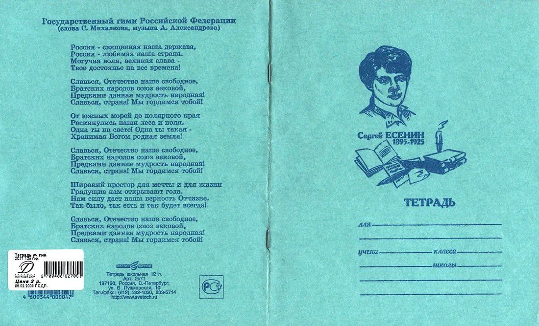 Текст гимна Российской Федерации будут печатать на школьных тетрадях